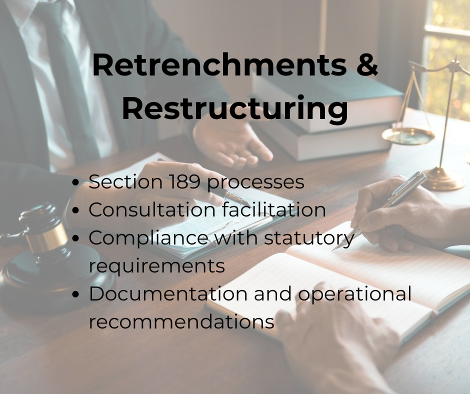Do not settle for anything less than the best when it comes to managing your workforce, implementing fair and lawful discipline, and driving optimized performance. We bring experience, integrity, and specialist knowledge to every organisation we support—ensuring that your people processes are not only compliant, but effective, sustainable, and aligned with your goals.